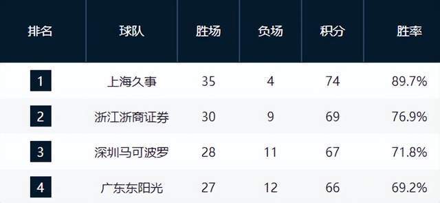 北京时间4月17日消息,CBA常规赛第39轮战罢,新赛季季后赛席位争夺正式尘埃落定,前10名球队全部锁定季后赛资格,上海男篮以35胜4负的傲人战绩提前三轮登顶常规赛冠军,成为本赛季首支锁定头名的球队。随着赛季进入尾声,上海队已进入练兵模式,重点在于轮休核心球员、规避伤病风险,为季后赛积蓄能量。广厦队以稳定发挥锁定前四,彻底摆脱附加赛压力,但第二名的归属仍存悬念,需待深圳与广东最终战绩落定后方能确认。