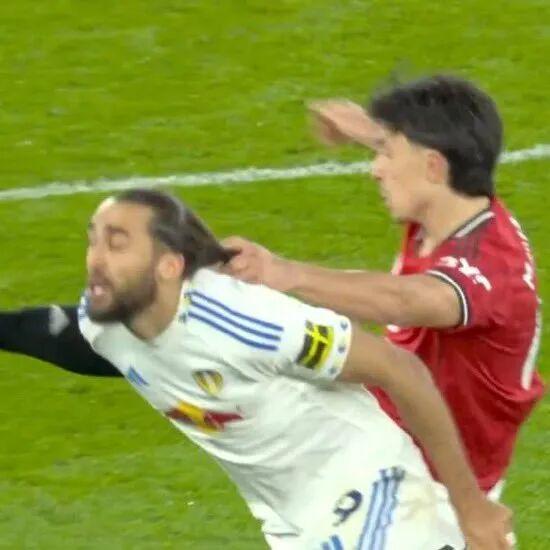马丁内斯在曼联对阵利兹联的比赛中拉扯勒温的辫子,随后被主裁判红牌罚下。