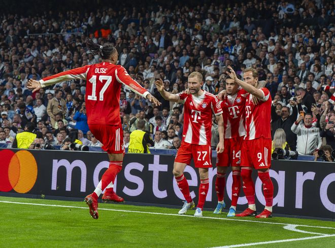 下半场易边再战,卡马文加替补染红,这也让皇马少打一人,随后,迪亚斯世界波兜射破门,帮助拜仁扳平比分,补时读秒阶段,奥利塞世界波破门,帮助拜仁彻底锁定胜局,最终,拜仁4-3击败皇马,以两回合总比分6-4淘汰对手,成功晋级欧冠4强,他们接下来将与大巴黎争夺一张决赛门票。